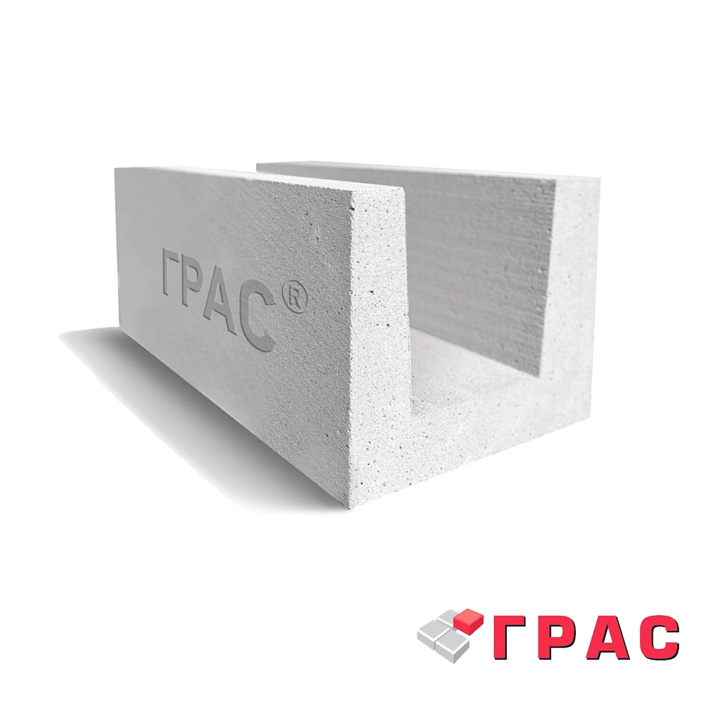 Чаще всего газоблок П-образный ДСК ГРАС используют для устройства армопоясов под плиты перекрытия или кровлю. Также подходит для формирования перемычек над оконными и дверными проемами, где требуется усиление конструкции.