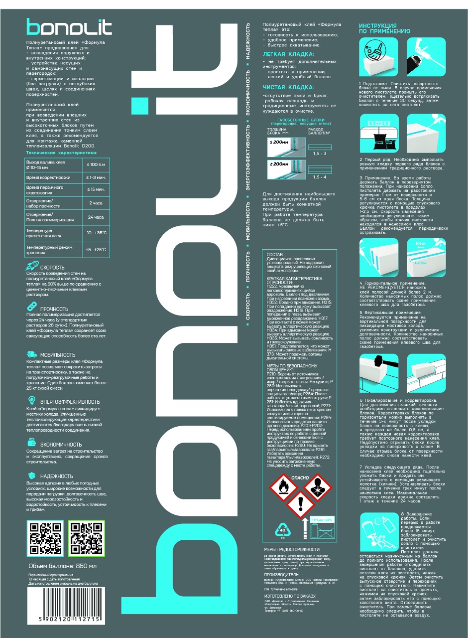 Bonolit полиуретановый клей "Формула тепла" объемом 750 мл представляет собой инновационное решение для надежного соединения газобетонных блоков. Этот продукт сочетает в себе высокую адгезию, удобство нанесения и стойкость к внешним факторам, делая его идеальным выбором для строительных работ. Благодаря специальной формуле, клей обеспечивает прочное сцепление без лишних усилий, экономя время и ресурсы на объекте.