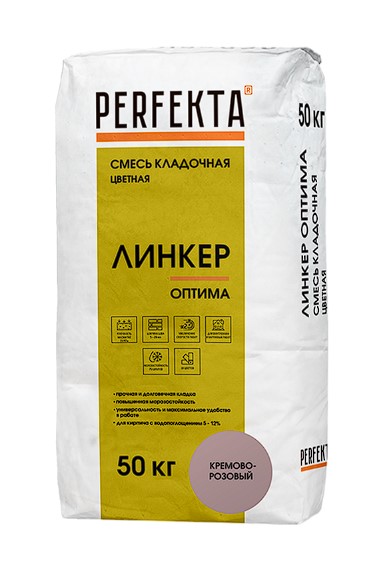 Смесь кладочная цветная PERFEKTA Линкер Оптима кремово-розовый, 50 кг – это высококачественный материал для кладки кирпича и блоков. Она обеспечивает прочное соединение с эстетичным кремово-розовым оттенком, подходящим для декоративных работ. Смесь готова к использованию после добавления воды, обладает отличной адгезией и устойчивостью к погодным условиям. Идеальна для фасадов и интерьеров, где важен цвет и долговечность.