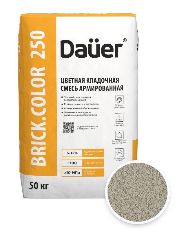 Цветная кладочная смесь армированная DAUER BRICK.COLOR 250 бежевый, 50 кг — это высококачественный строительный материал, предназначенный для кладки кирпича и блоков. Она сочетает в себе прочность, эстетику и удобство в использовании, обеспечивая долговечность конструкций. Смесь имеет бежевый оттенок, армирована для повышения прочности и поставляется в мешках по 50 кг, что делает ее идеальной для профессионального и домашнего применения.