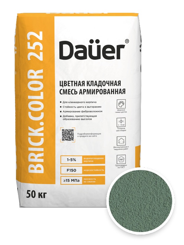 Цветная кладочная смесь армированная DAUER BRICK.COLOR 252 зеленый, 50 кг